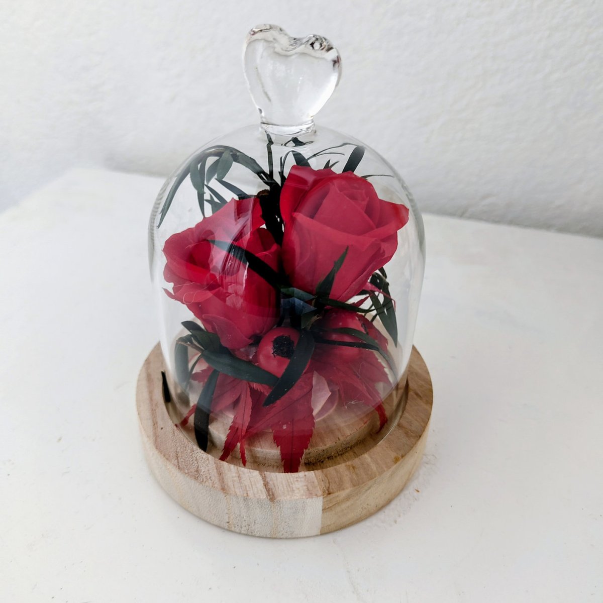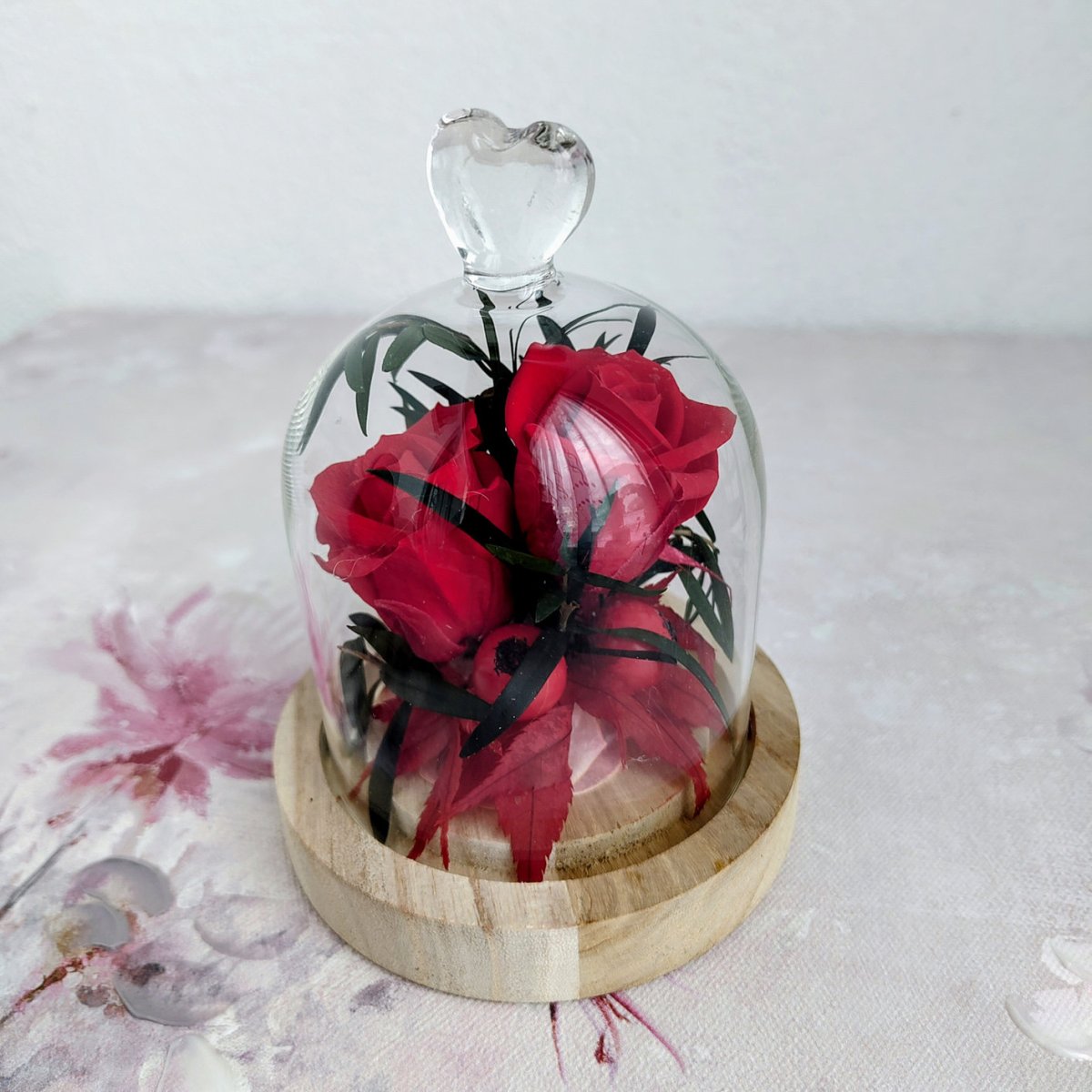 Petite cloche en verre dans les tons rouges pour un joli petit cadeau  pour la saint Valentin ou toutes autres occasions, qui fera plaisir, 100% naturel, pas d'entretien et dure plusierurs années.