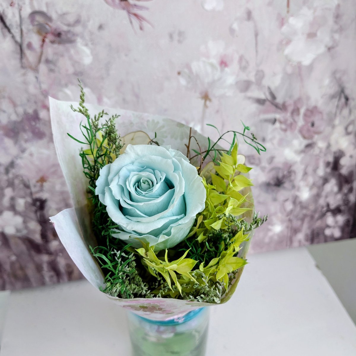Ce petit bouquet se compose d'une rose stabilisée accompagnée de fleurs séchées 100% naturel et qui durent plusieurs années sans aucun entretien.